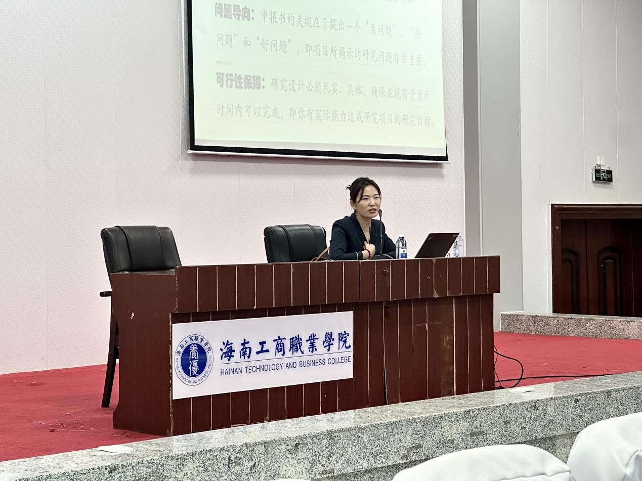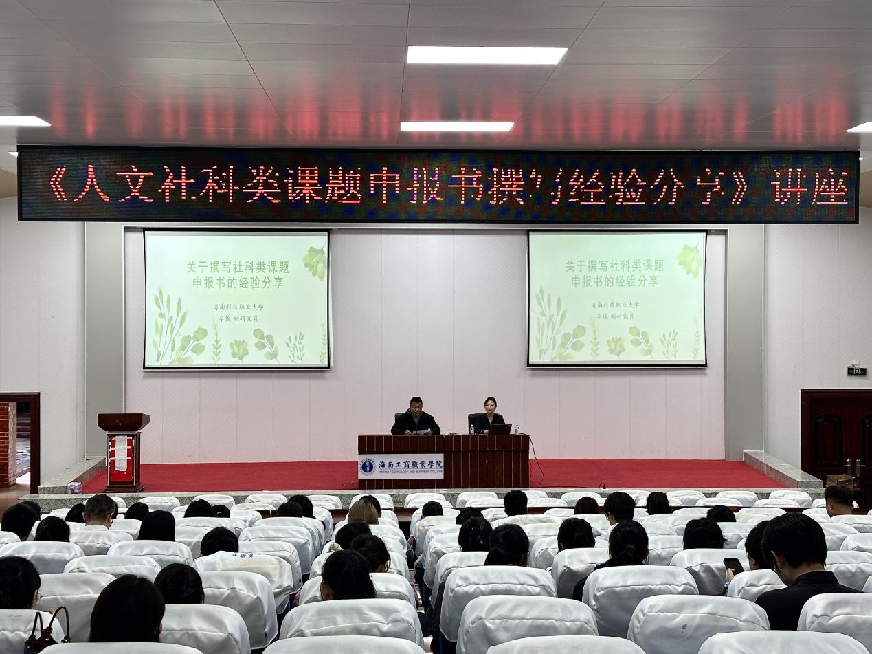 为破解教师在社科类课题申报中的难点堵点,提升科研申报竞争力,助力学院科研工作提质增效,11月21日下午,我院在第二学术报告厅举办社科类课题申报经验专题分享会。本次会议特邀海南科技职业大学设计学院副院长、副研究员李俊博士主讲,学院全体教师及部分兄弟院系科研骨干共一百余人参会。